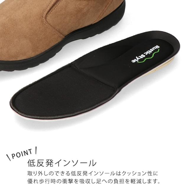 取り外しのできる低反発インソールはクッション性に優れ歩行時の衝撃を吸収し足への負担を軽減します