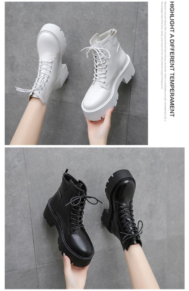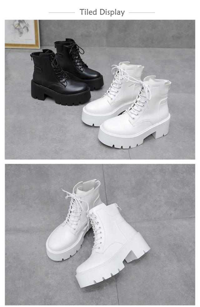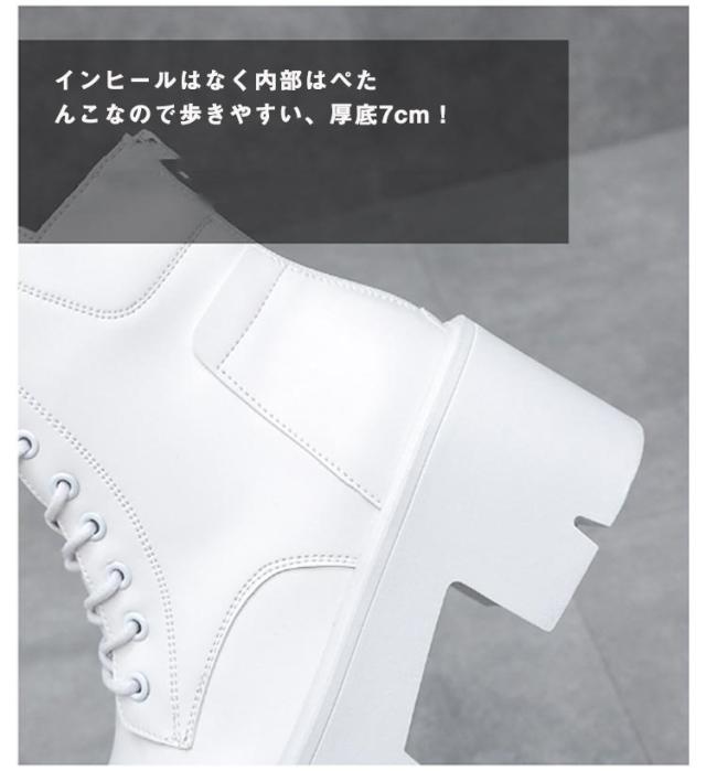 厚底ブーツ 厚底 ショートブーツ 靴 ハイヒール レースアップブーツ ブーツ 痛くない 履きやすい 太ヒール 厚底ブーツ 秋ブーツ レディース 冬 歩きやすい 柔らかい 身長アップ 編み上げブーツ 秋 ヒール7cm かわいい ブラック ホワイト 白