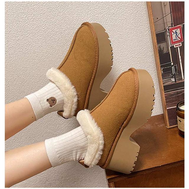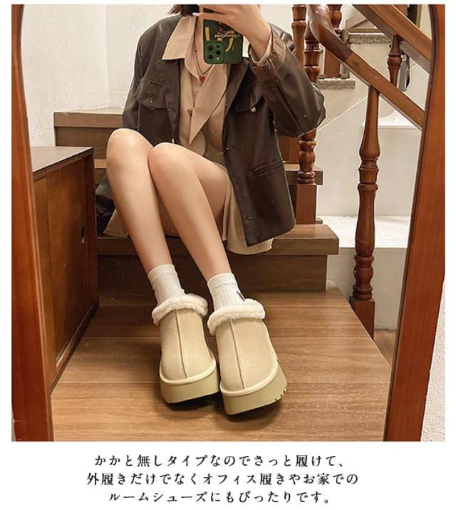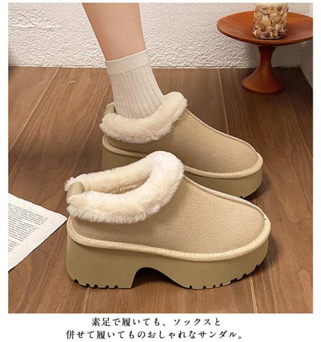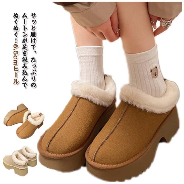 厚底 ルームシューズ 防寒 可愛い ムートン オフィススリッパ 6.5cmヒール ファー シューズ フラット ムートン風 ぺたんこ サンダル 冬用 暖かい 冷え対策 ムートン もこもこ 冷え防止 あったか 裏ボア おしゃれ 室内履き 室外履き ファースリッパ 滑り止め