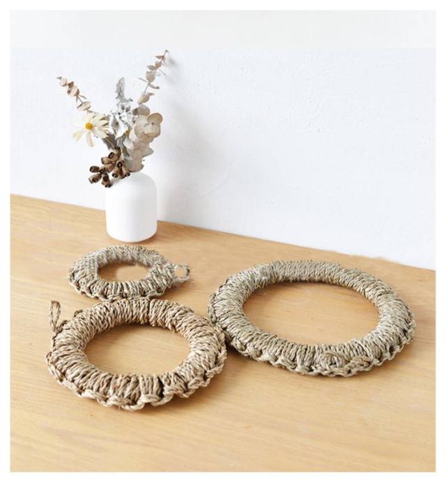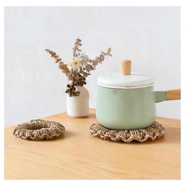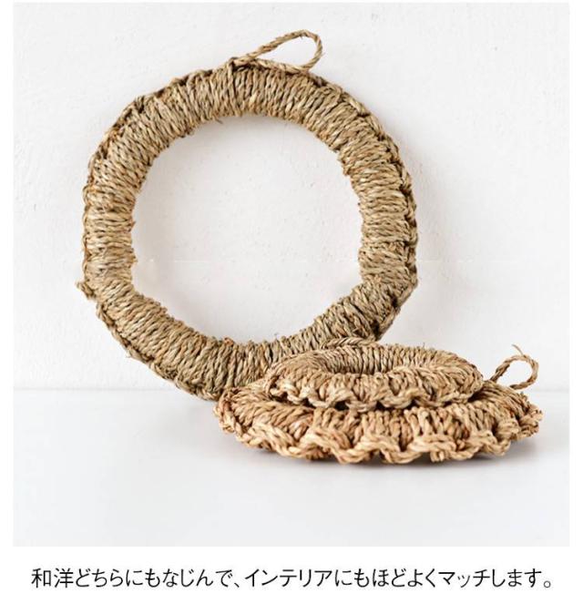 | 天然素材でしっかりと丁寧に編まれた鍋敷きです。 フックが付いているので、使わないときには壁にかけて収納。 見た目もシンプルでおしゃれです。 口が大きく開きますのでとっても使いやすいのです。 3サイズありますので、お鍋やケトルの大きさに合わせて揃えてみても。 和洋どちらにもなじんで、インテリアにもほどよくマッチします。 | |