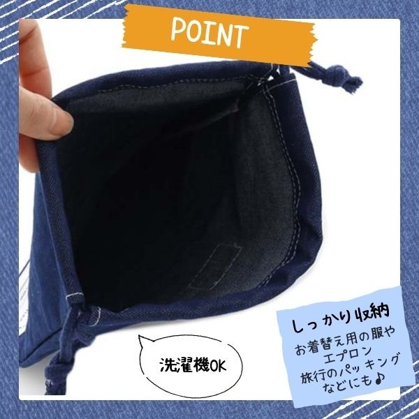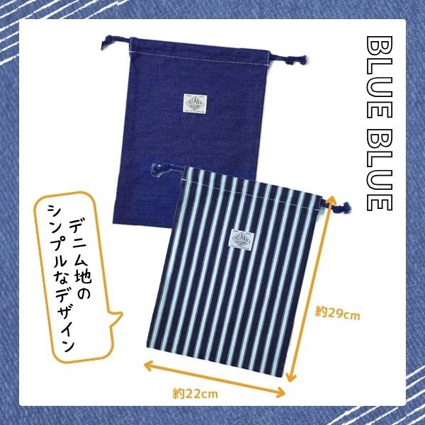 Ocean&Ground 巾着中 BLUE BLUE Mサイズ キッズ ジュニア ベビー デニム 巾着袋 巾着 着替え袋 給食袋 エプロン袋 道具袋 洗濯OK 男の子 女の子 入園 入学 入園準備 入学準備 オーシャンアンドグラウンド 1325909