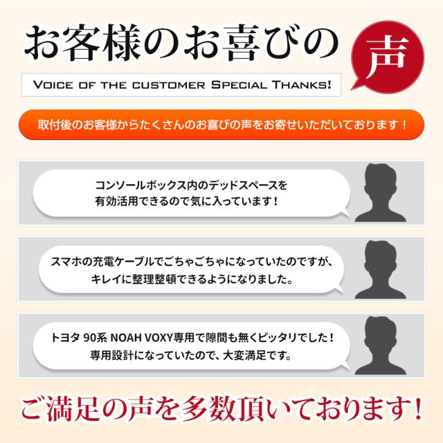 | トヨタ 90系 NOAH VOXYのコンソールボックスにピッタリ設置できる設計になっていますので、テープで固定する必要はありません。 |