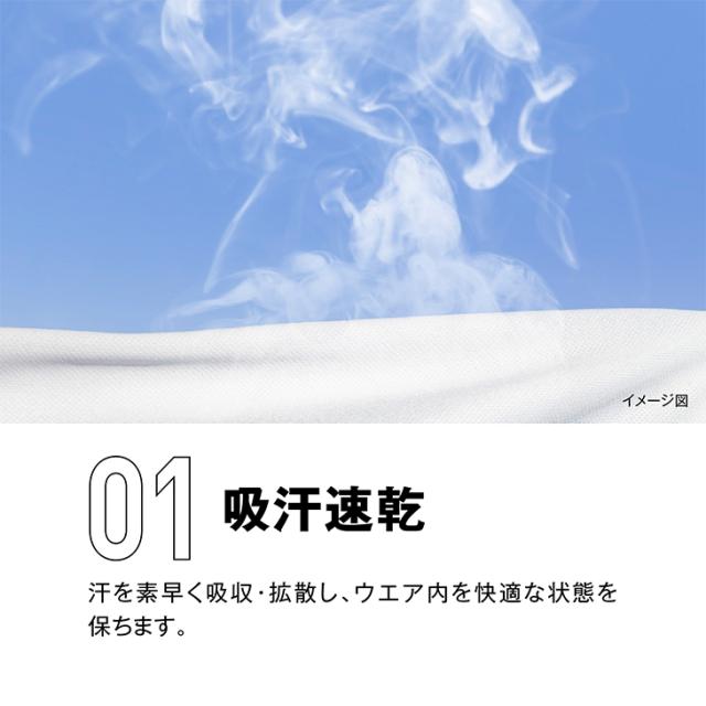 吸汗速乾機能とUVカット(UPF15)を兼ね備えた、