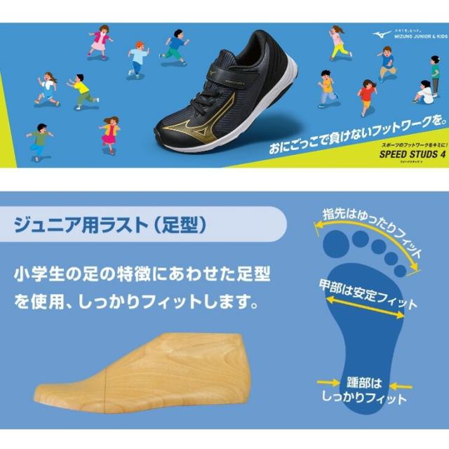 ミズノ ジュニア スニーカー 2E相当 子供靴 mizuno スピードスタッズ4 ひも靴 21-25cm 子ども キッズシューズ 小学生 男の子 女の子 運動靴 軽量 走りやすい 体育 スポーツ 通学靴 スクール 小学校 こども ブランド SPEED STUDS 4 くつ/K1GC2425-A