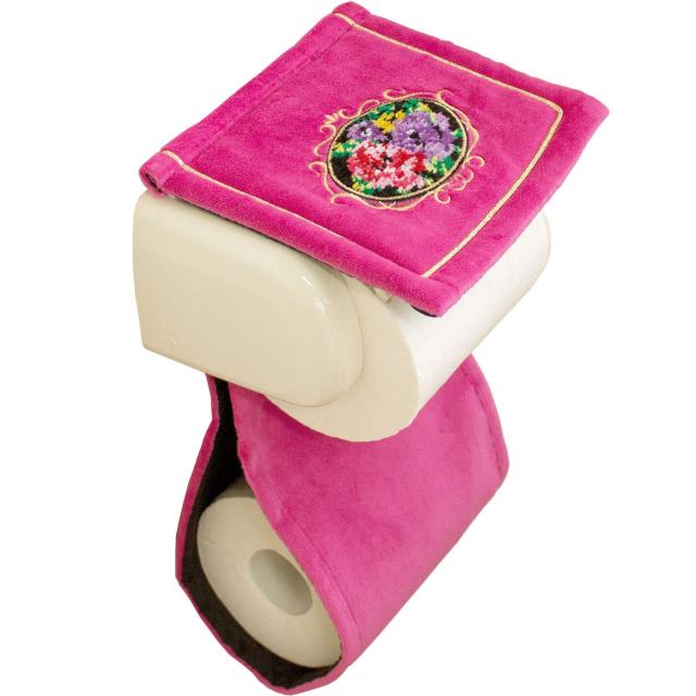 オカ(OKA) ペーパーホルダーカバー ピンク スペア入れ付 シェニールロゼ (エレガ ント ゴージャス)