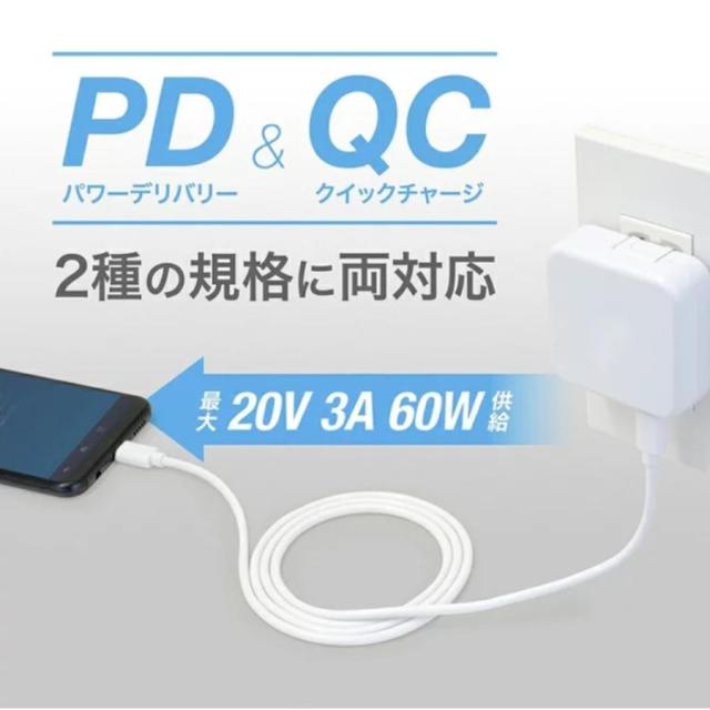 USB PD(Power-Delivery)対応により、最大60Wの高速充電を対応可能。スマホだけでなく充電に時間のかかる各種タブレット、PCなどの充電時間を大幅に短縮できます。