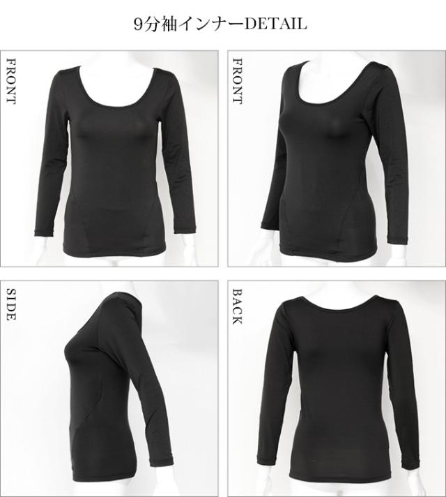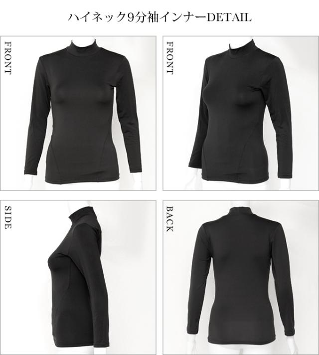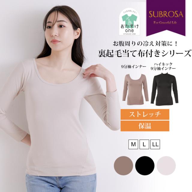 お腹周り 冷え対策に 裏起毛 当て布付き おたすけone 9分袖 インナー ハイネック Uネック 保温 ストレッチ 九分袖 長袖 あったかインナー レディース 女性用 インナーシャツ 秋冬 無地 厚手 快適 シンプル おしゃれ あたたかい あったか アンダーシャツ 肌着 送料無料
