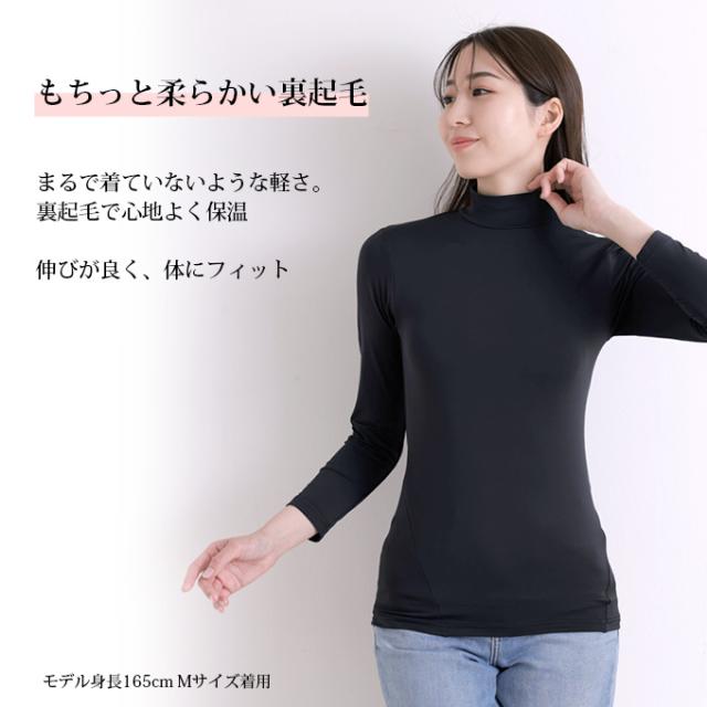 もちっと柔らかい裏起毛まるで着ていないような軽さ。裏起毛で心地よく保温ができ、伸びも良く、体にフィットします。