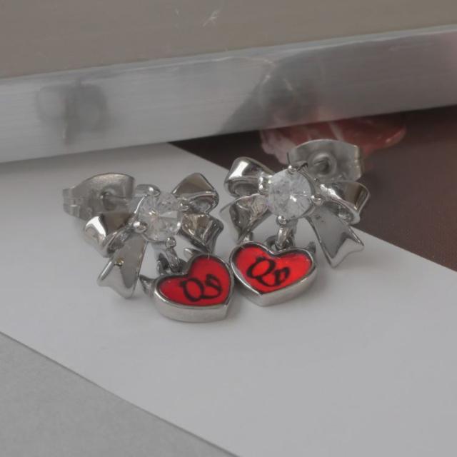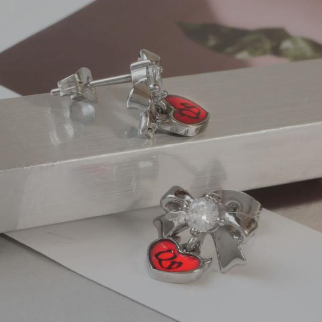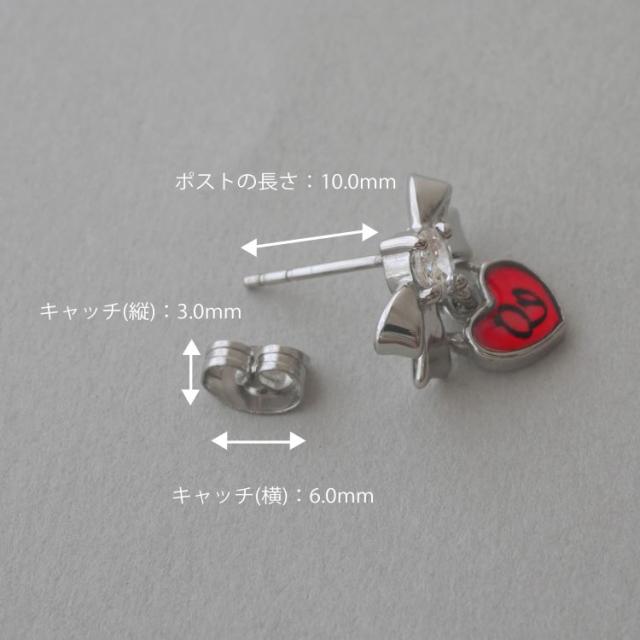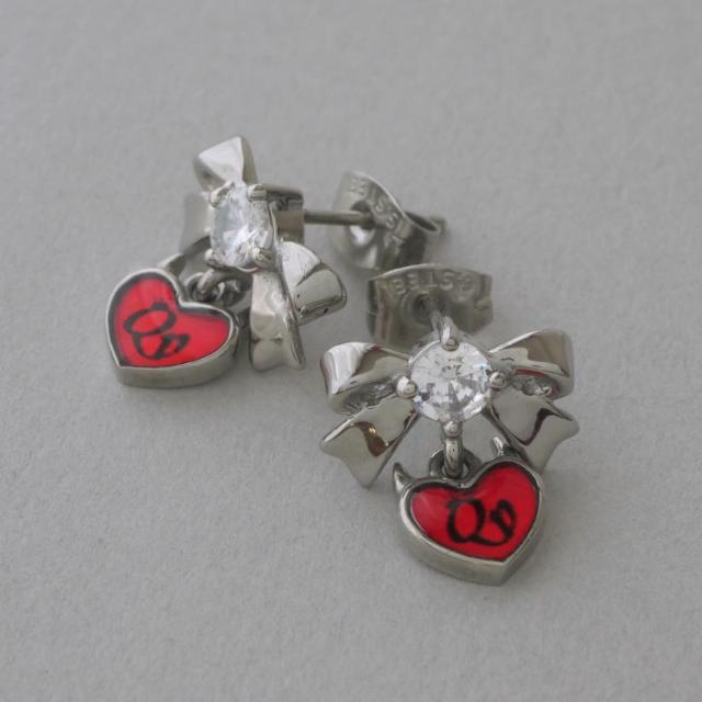 リボン×ハートはとても愛らしいデザインでございます。 大変キュートなデザインでありながらもハートの部分にはロゴをが入れることで、女王の証を表現されております。 スタッドピアスは着脱が簡単でピアスホールへの負担も少ないピアスでございます。
