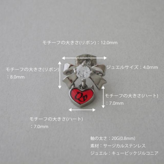 kaaオリジナルブランド 女王の証 Queenspain クハートリボンピアス 両耳用 スタッドピアス 20G