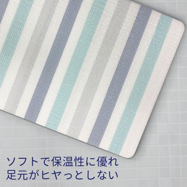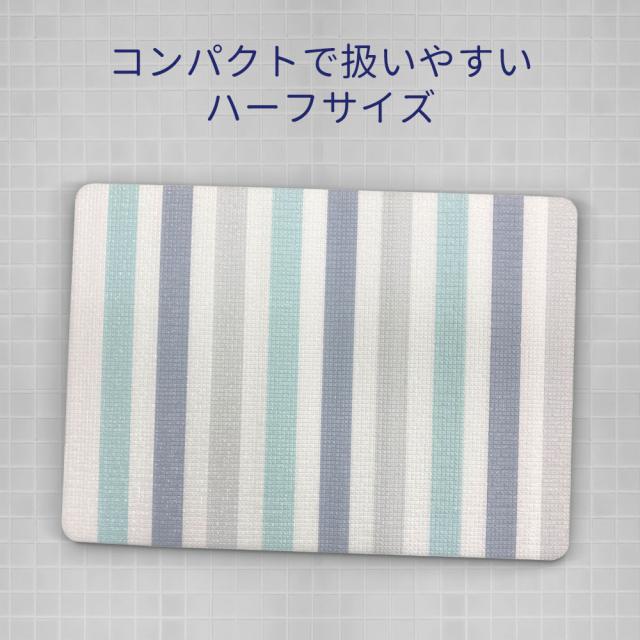 クッション性・保温性に優れた、ハーフサイズのボーダー柄浴室内マット。