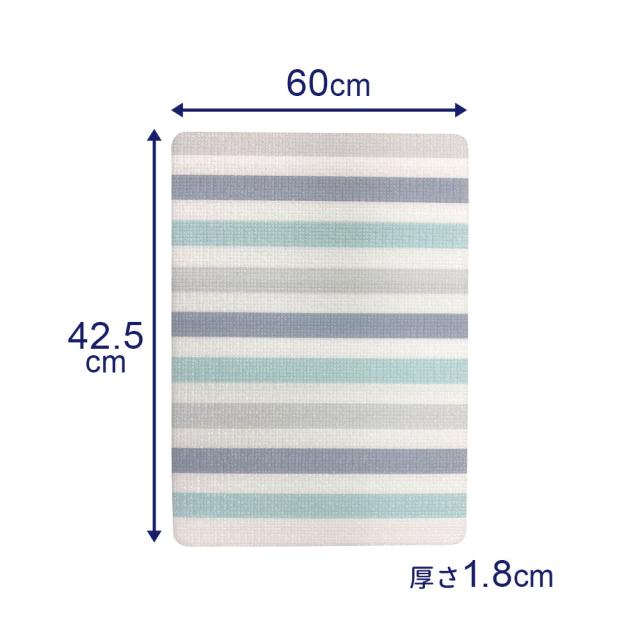 お風呂マット ハーフマット 60×42.5×厚み1.8cm ボーダー | 浴室マット 洗い場 日本製 風呂場 すのこ 小さめ やわらか 冷え防止 子ども 足元あったか 水ハケ 小さい
