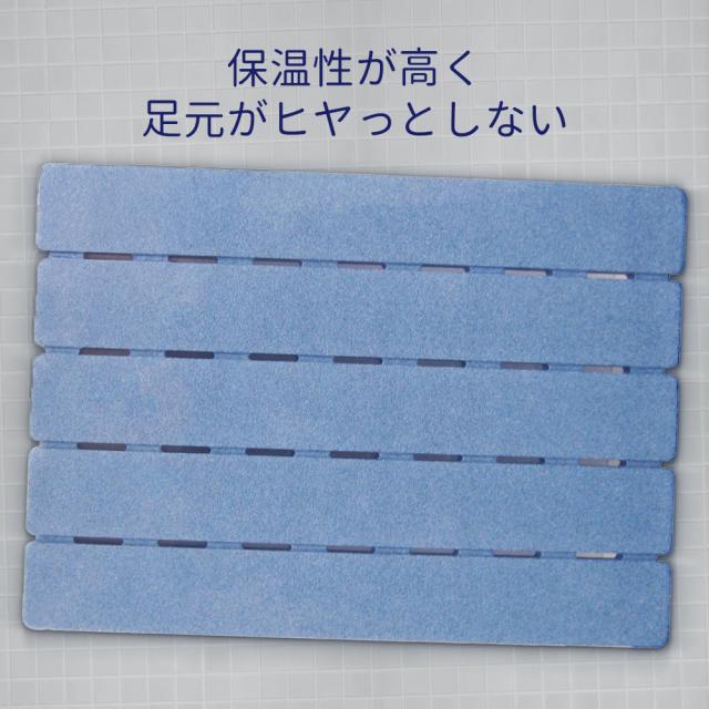 足元がヒヤッとしない保温性の高い発泡ポリエチレンを使用しており、ソフトであたたかな感触のスノコです。