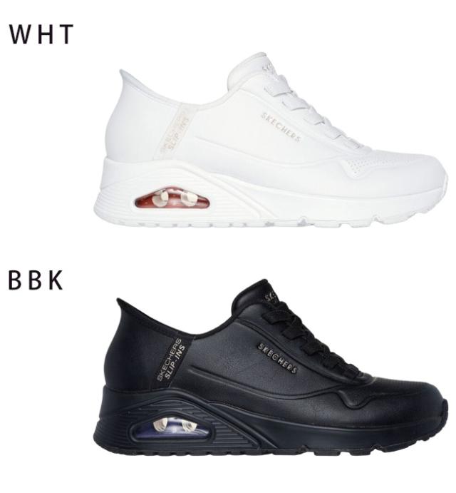 スケッチャーズ スリップインズ スニーカー レディース スリッポン 手を使わずに履ける エアソール 軽量 防滑 黒 白 ウノ-イージー エア 177112 靴