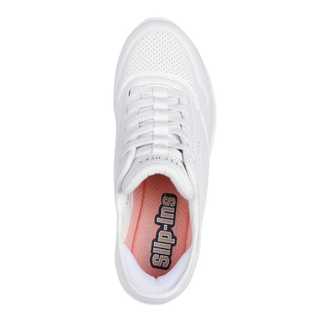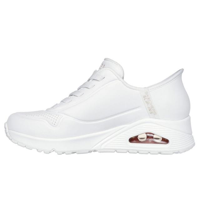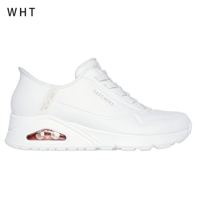 アイコニックな人気アイテムをさらに快適で履きやすくアレンジしたSkechers Street(スケッチャーズ ストリート) Hands Free Slip-ins(ハンズフリー スリップインズ): ウノ-イージー エア。独自のHeel Pillow(ヒールピロー)デザインを採用したファッションスニーカー。ストレッチレースを配した人工皮革のアッパー、クッション性のあるSkechers Air-Cooled Memory Foam(スケッチャーズ エアクールドメモリーフォーム)インソール、ビジブル構造のSkech-Air(スケッチエア)エアバッグミッドソールが特長です。