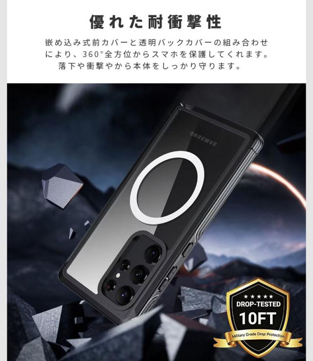Galaxy S25 Ultra ケース Galaxy S24 Ultraケース 防水ケース 完全防水 防塵 防雪 ギャラクシー S24 ウルトラカバー 全面保護 クリア 透明 保護 galaxy S25 カバー 滑り止め ワイヤレス充電 MagSafe対応 スクリーン保護 防水 耐衝撃ケース スマホケース Galaxy S24ケース