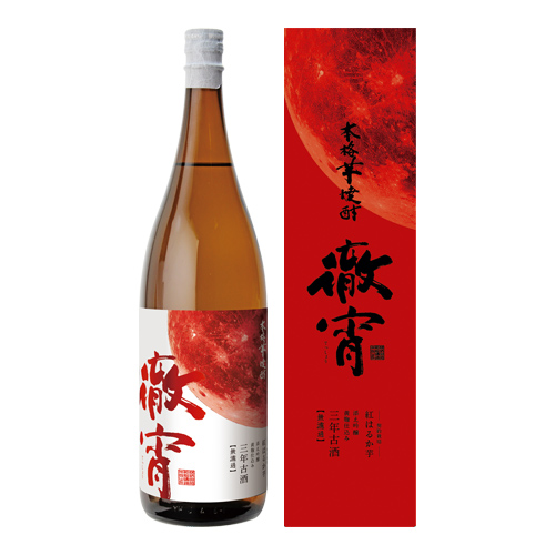 「徹宵ベニハルカ三年古酒」は球磨地方で契約栽培した紅はるかを「徹宵」と同じ製法の吟醸造りに、さらに添え吟醸黄麹を加えた新酒を3年間熟成。