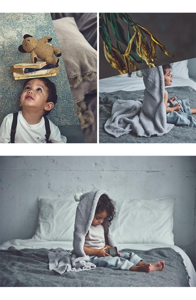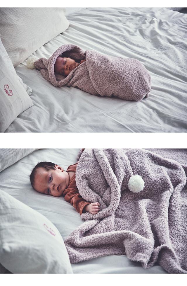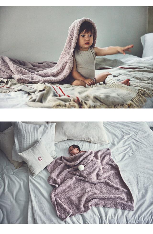 【特徴】上質なブークレ素材を使用した、使いやすいサイズのブランケットが登場。赤ちゃんをあたたかく包み込む、冬のおくるみとして使えます。