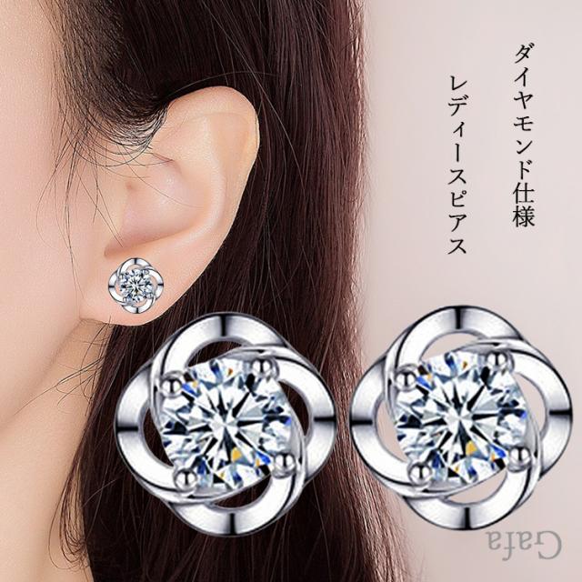 韓国風ピアス アレルギー対応 宝石四つ葉のクローバー仕様ピアス 両耳用2個セットシンプル レディース シルバー925 シルバー ジュエル 可愛い