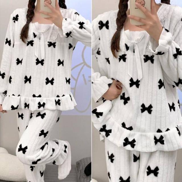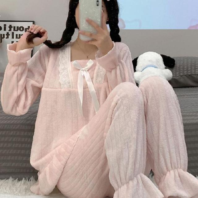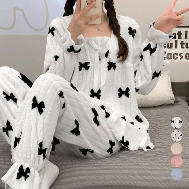 フリースパジャマ 上下セットアップ 韓国