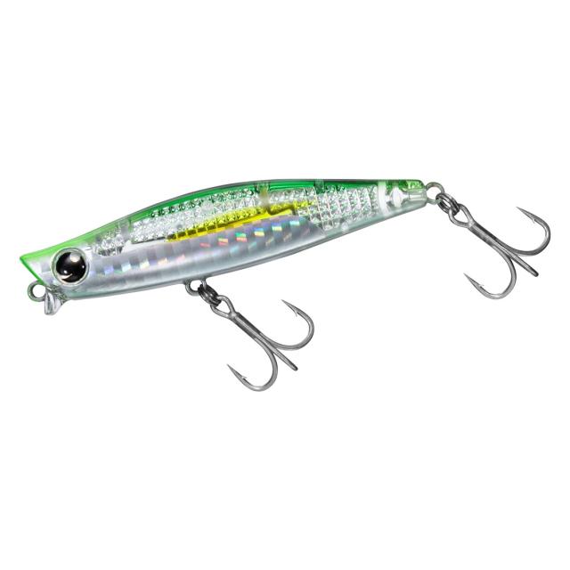 揚力を生み出す独特な上ゾリ形状のヘッドと計算され尽くしたショートリップを携えたガルバ73Sは、着水直後から浮き上がりやすく、また横風時にラインを煽られても水面を滑ることなく水面直下をレンジキープして引いてくることのできる「リップ付きシンキングペンシル」。
