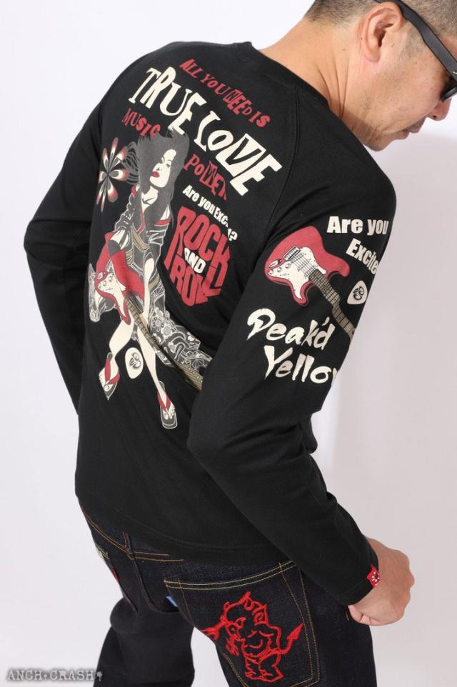 PEAK'D YELLOW ギター姉御 ロンT (PYLT-243) 【メール便送料無料】長袖 Tシャツ ロングTシャツ ピークドイエロー エフ商会 ポスト投函の為※日時指定・代引き・ラッピング不可