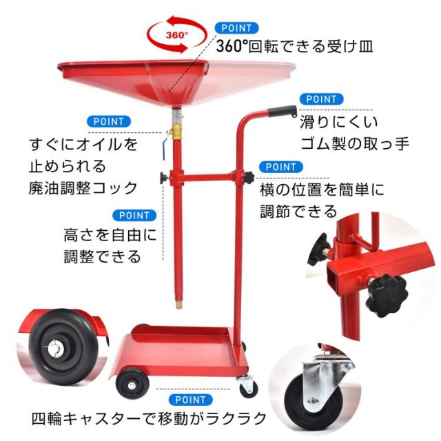 オイルドレン オイルドレーナー オイルチェンジャー オイル交換 下抜き エンジンオイル 車 自動車 整備 修理 360°回転 四輪 自在キャスター ペール缶 一斗缶 ポリタンク 移動 持ち運び カー用品 ee402