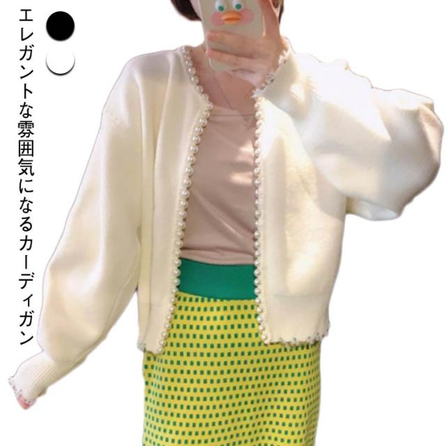 パール 付き ニット カーディガン パール調ニット ニットカーディガン レディース ニットトップス セーター ニットカーデ おしゃれ エレガント 春 秋 冬
