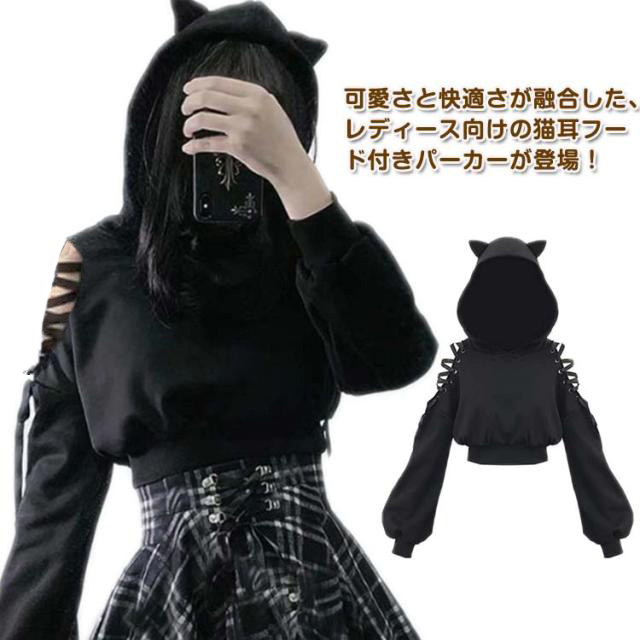 送料無料 猫耳パーカー レディース 猫耳 パーカー プルオーバー キュート ネコミミ へそ出し 肩出し トップス 韓国ファッション 長袖 ショート丈 スウェットパーカー オフショルダー オフショル フード付き トレーナー 大きいサイズ 通学 通勤 春 秋 冬 可愛い ストリート系