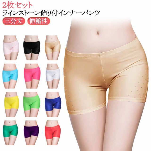 2枚セット ベリーダンス インナーパンツ 見せパンツ 三分丈 ラインストーン付 レディース 女性 インナーショートパンツ ダンスインナー ショーツ ラインストーン飾り付 社交ダンス ストレッチ素材 黒 白 送料無料