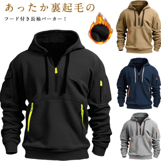 裏起毛パーカー メンズ 長袖パーカー スウェット プルオーバー 暖かい フード付き 防寒 無地パーカー 厚手 あったか ゆったり 大きいサイズ ルームウェア 冬服 通学 20代 30代 40代