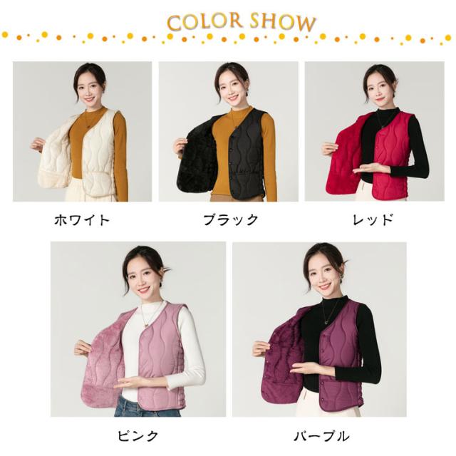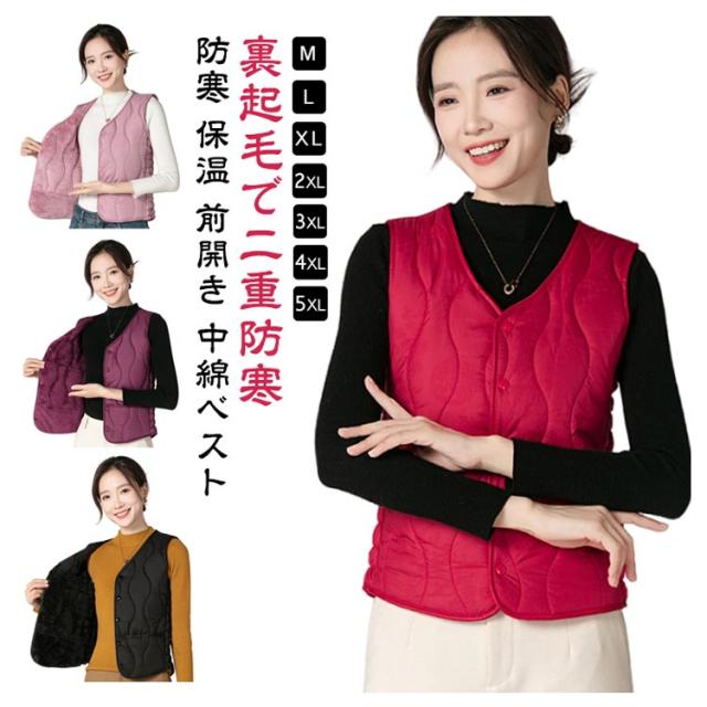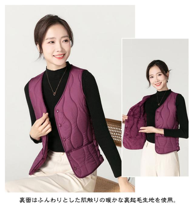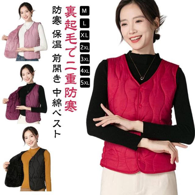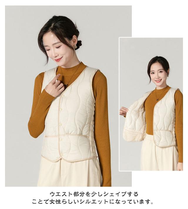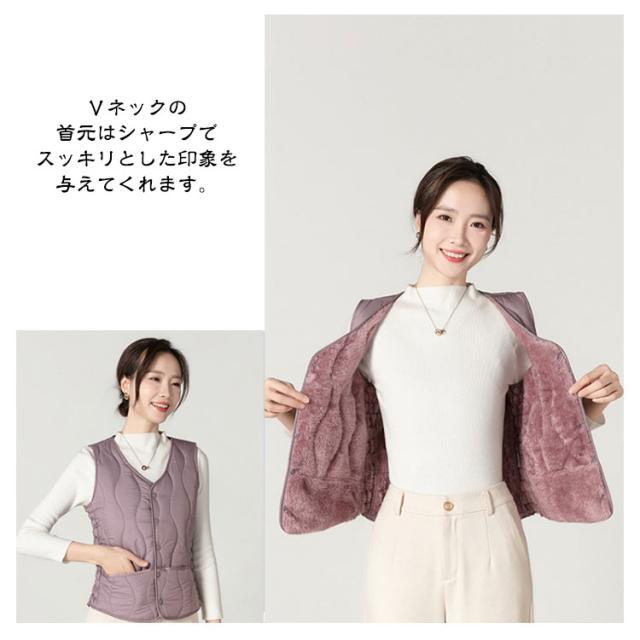 インナーベスト 裏起毛 レディース 中綿 ベスト Vネック 裏ボア 前開き 中綿ベスト ダウンベスト 秋 冬 インナーダウン キルト 波型 キルティング ベスト インナー 厚手 ポケット付き あったか 防寒 保温 コンパクト ストレッチ 細身 大きいサイズ 【送料無料】