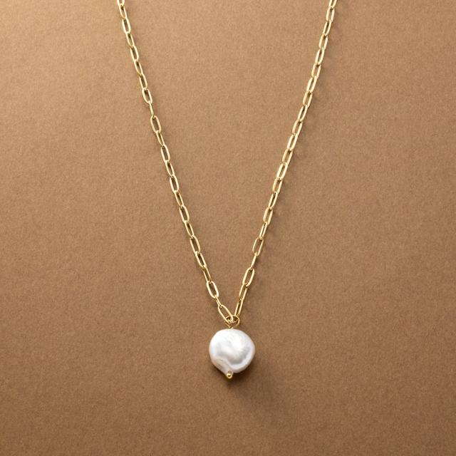 淡水パールをモチーフに、華奢なオーバルチェーンが艶めくネックレス。エレガンスとシンプルさがミックスした洗練された印象をプラスします。日常のコーディネートや幅広いスタイルに合わせやすいひと品です。