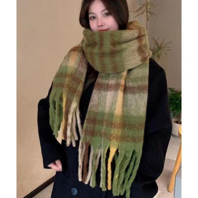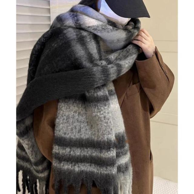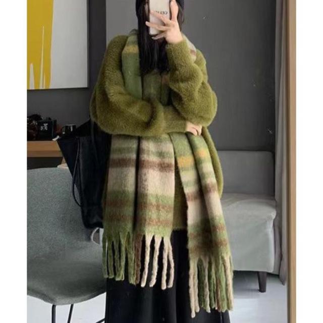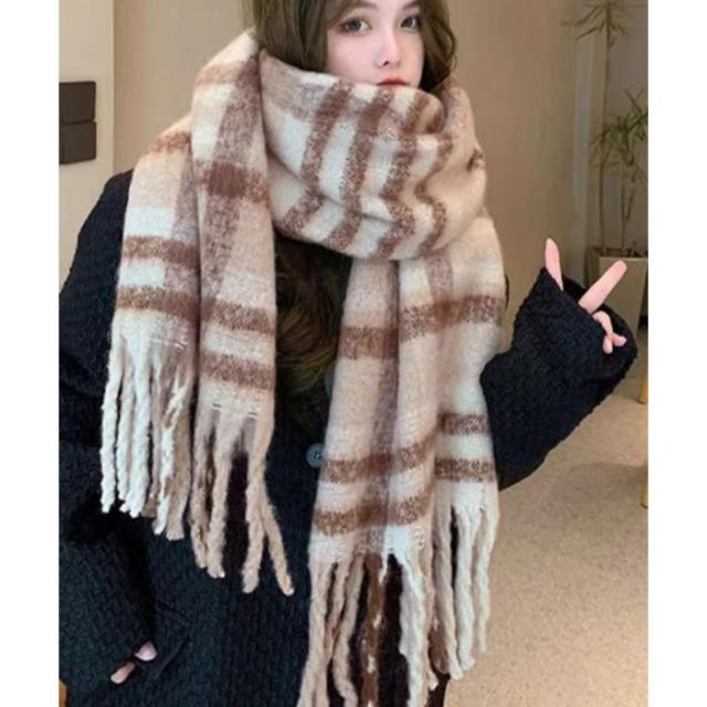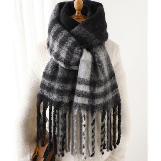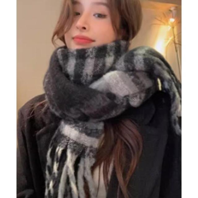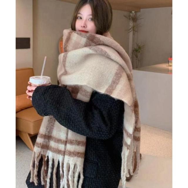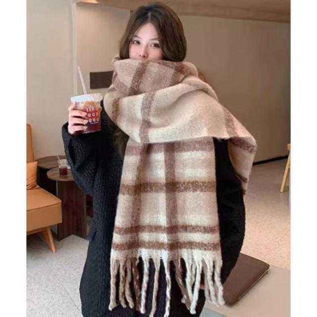 肌寒い季節に大活躍!使い勝手の良いチェック柄大判リバーシブル厚手マフラー