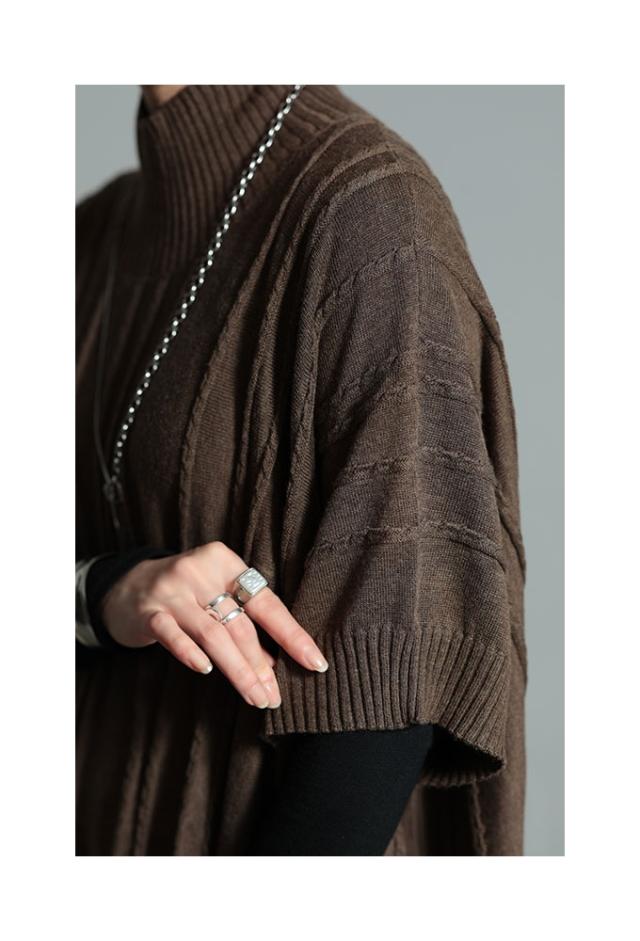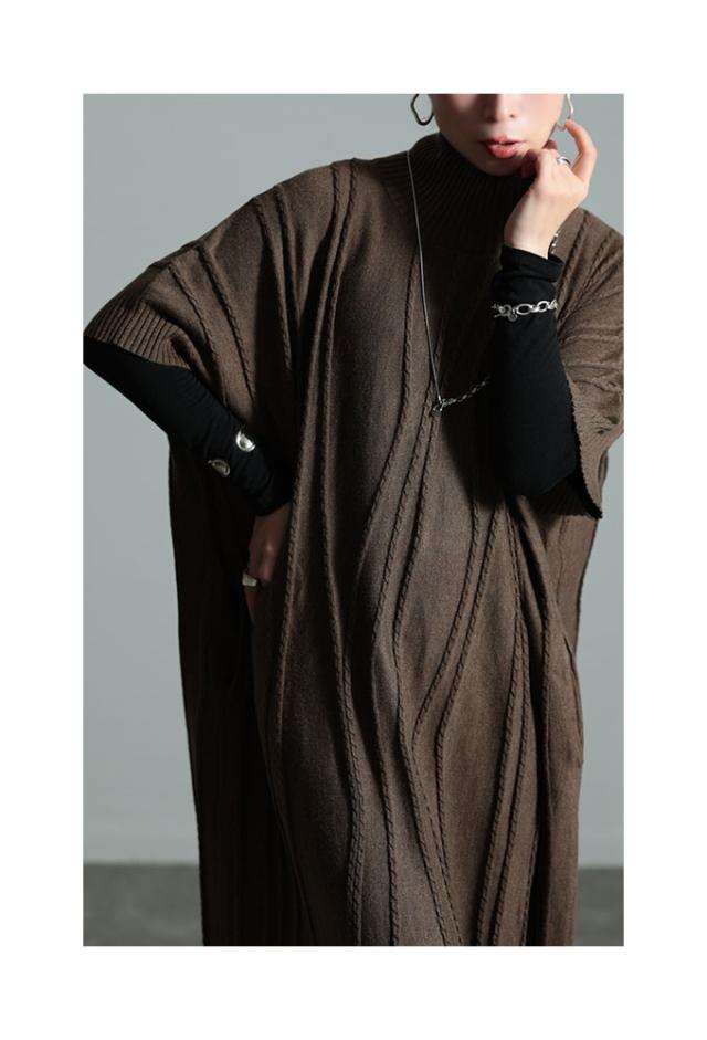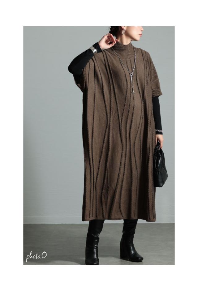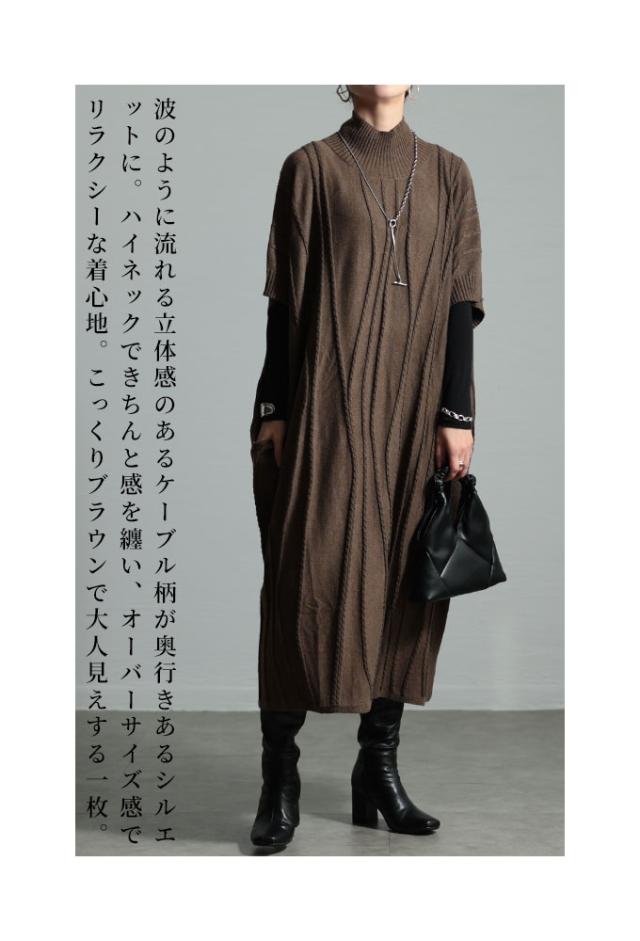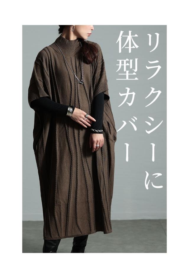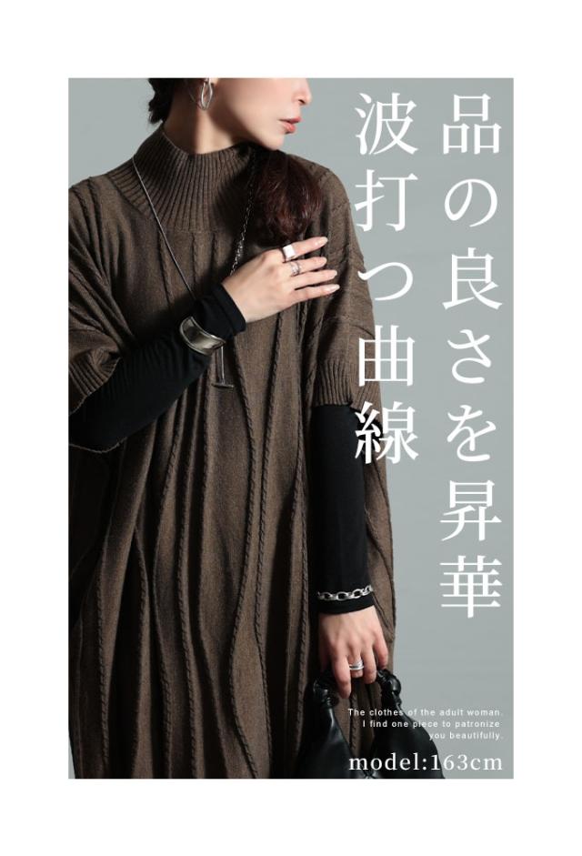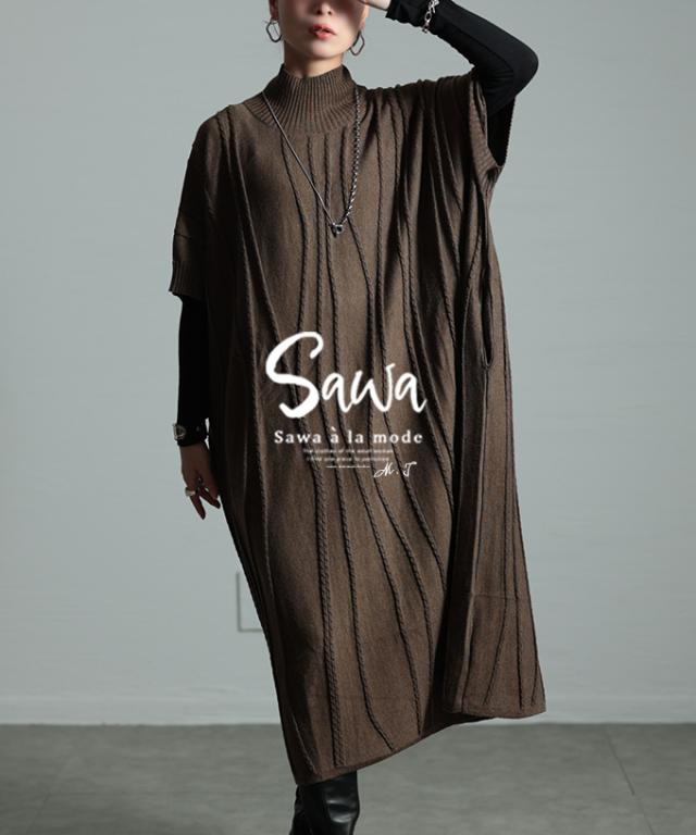 春新作 流れるケーブル模様ハイネックニットチュニック レディース ファッション チュニック ニット ケーブル ライン 凹凸 立体 半袖 ハイネック ミモレ 秋 冬 30代 40代 50代 60代 サワアラモード sawaalamode otona 大人 cawaii 可愛い 洋服 かわいい服 sawa-9764
