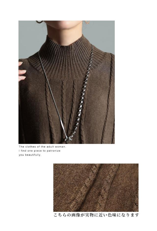 商品名: 流れるケーブル模様ハイネックニットチュニック