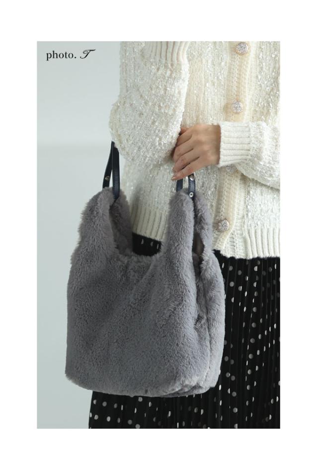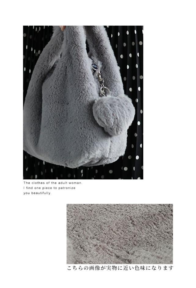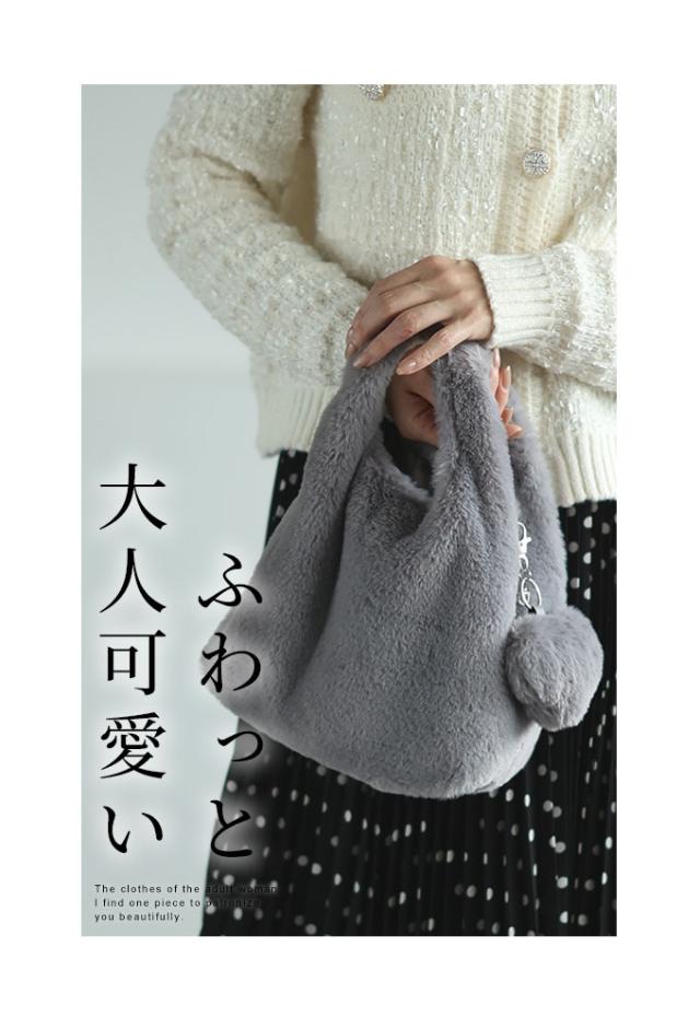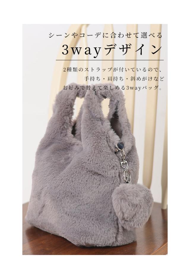 春新作 3way楽しめるチャーム付きふわっと可愛いファーバッグ レディース ファッション 小物 バッグ カバン 鞄 かばん グレー 大人可愛い 40代 レディースファッション 50代女性 ファッション 60代 ミセスファッション サワアラモード sawaalamode otona almy-0025