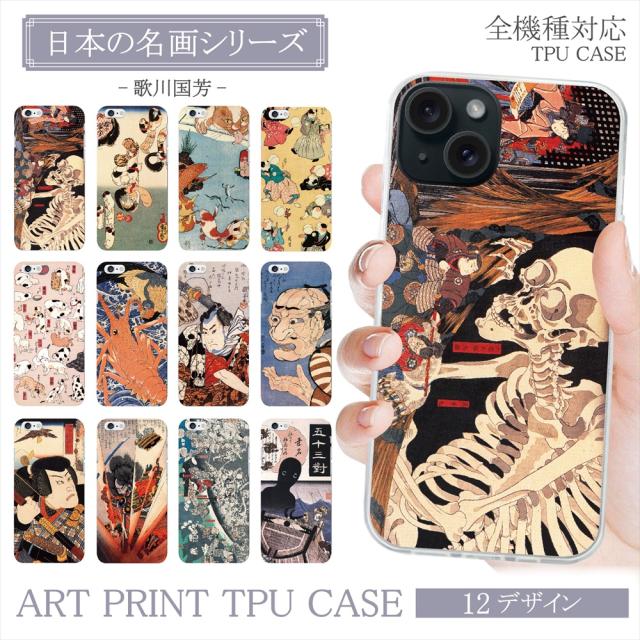 全機種対応 スマホケース TPUケース 浮世絵 歌川国芳 金魚づくし がしゃどくろ 相馬の古内裏 猫 なまづ クリア オーダー プリント TPU iPhone 16e カバー アート 名画 ケース 版画 絵画 16pro Google Pixel 8a OPPO Reno9 A AQUOS sense9 Xperia Galaxy A25 5G galaxy s24