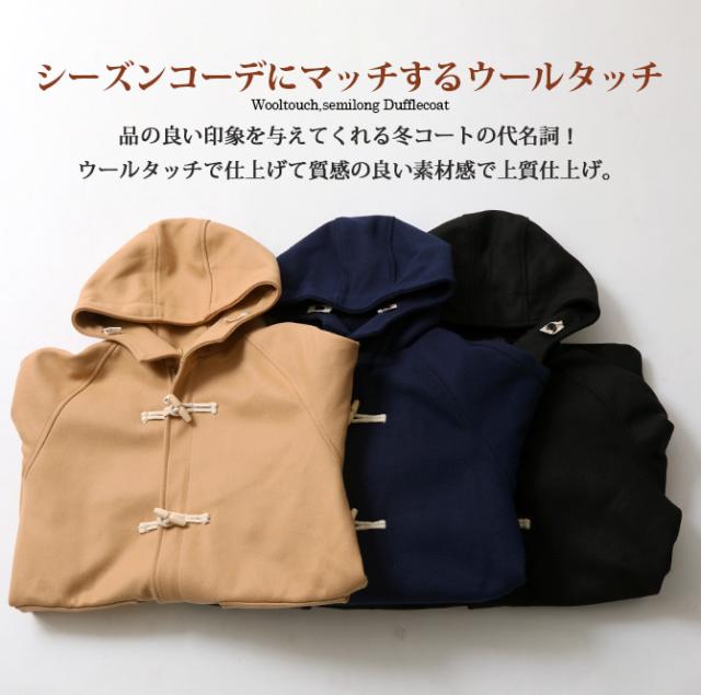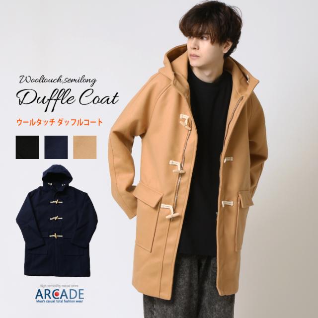ダッフルコート メンズ コート ウールタッチ メルトンタッチ セミロングコート アウター シンプル メンズファッション 無地 ARCADE 秋服 冬物 冬服 冬アウター
