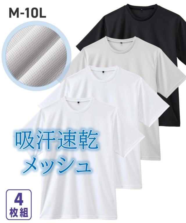 下着 インナー 吸汗速乾ハニカムメッシュ クルーネック半袖インナー4枚組