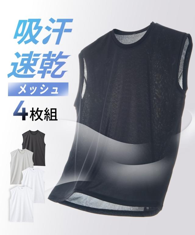 下着 インナー 吸汗速乾ハニカムメッシュ クルーネックノースリーブインナー4枚組 ニッセン nissen