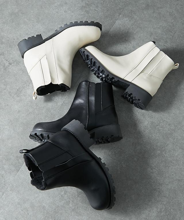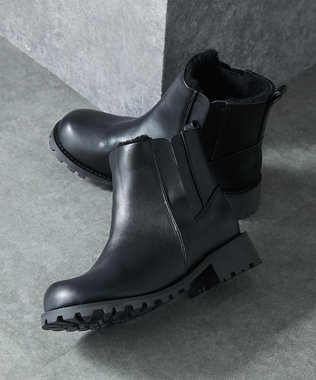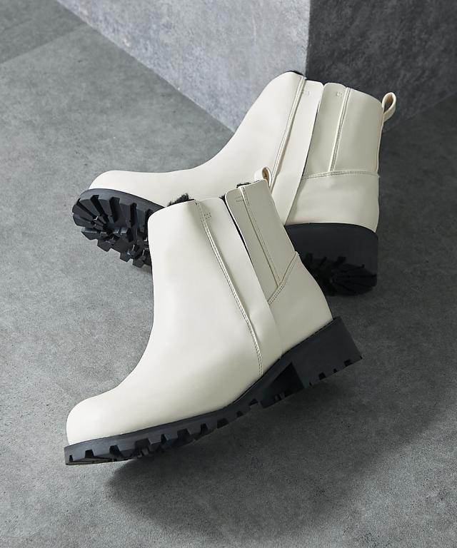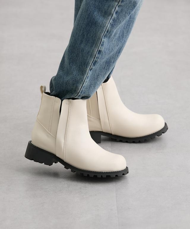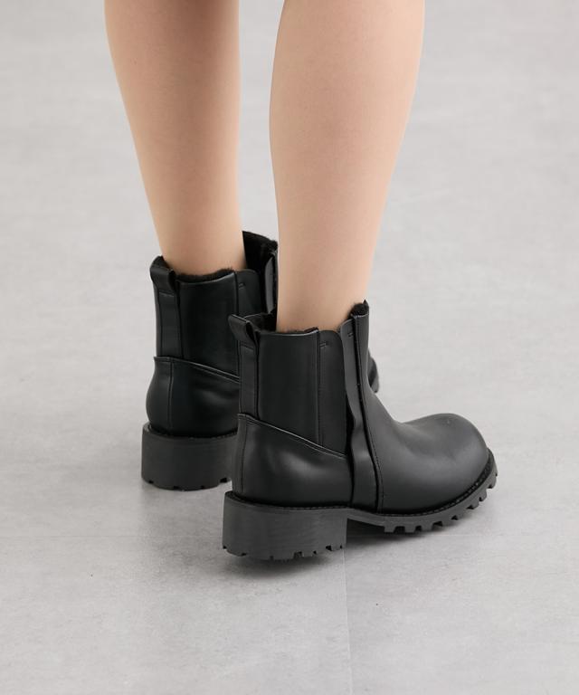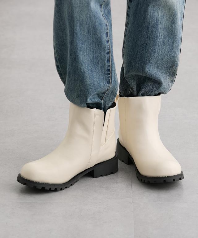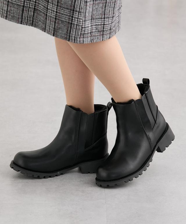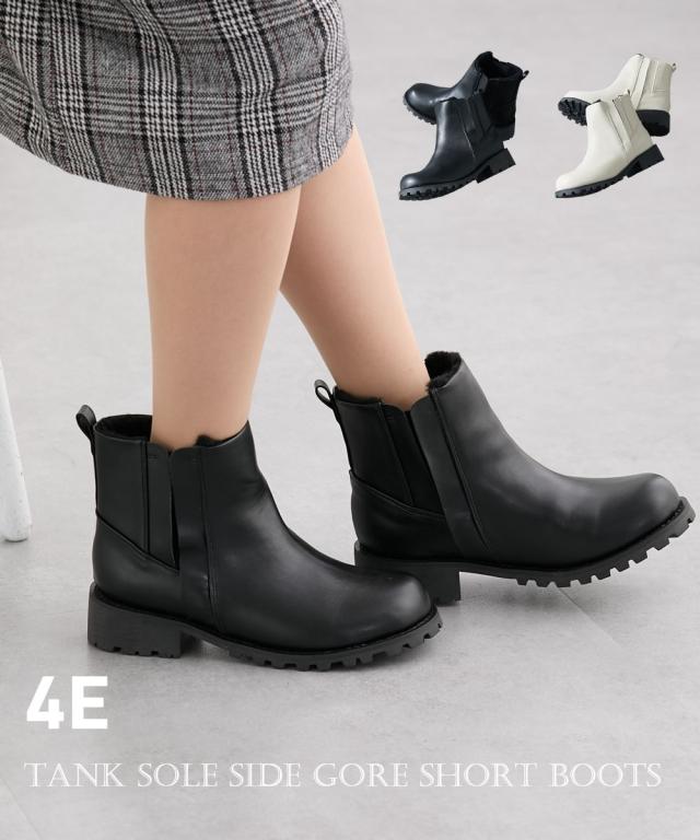 大きいサイズ レディース ゆったり幅広 タンクソールサイドゴア ショート ブーツ ワイズ4E シューズ 23.0〜23.5/24.0〜24.5cm ニッセン nissen