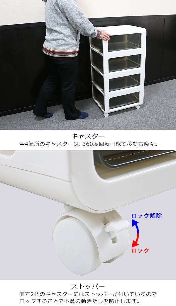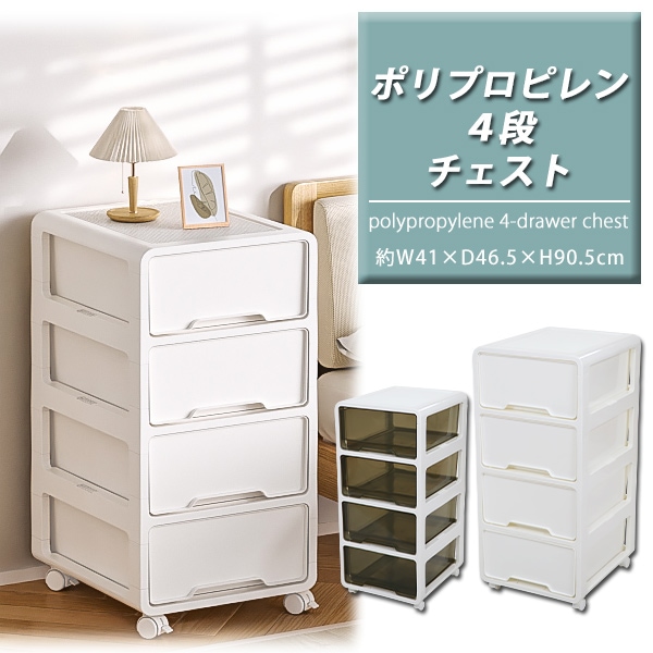 プラスチックチェスト 4段チェスト 収納ボックス 収納ケース 完成品 選べるカラー 約W41×約D46.5×約H90.5(cm) チェスト キャスター付 衣類 タオル キャビネット 押し入れ クローゼット 箪笥 タンス 衣類収納 家具 寝室 ポリプロピレン プラスチック h01chest4dw