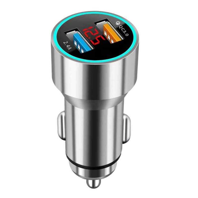 TEMEDO【PD36w/2ポート】シガーソケット usb シガーソケット電圧計 車の電圧測定 車 usb c しがーソケット 2連 全金属/耐用/軽量 車 充電器 LED デジタルディスプレー搭載 急速充電 12V・24V車対応 車載充電器(ブラック) (USBポート, シルバー)
