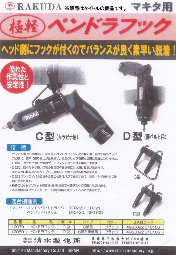 RAKUDA 品番12080 ペンドラフック D型 右手左手兼用 ブラック ラクダ 清水製作所 小型便 ♪