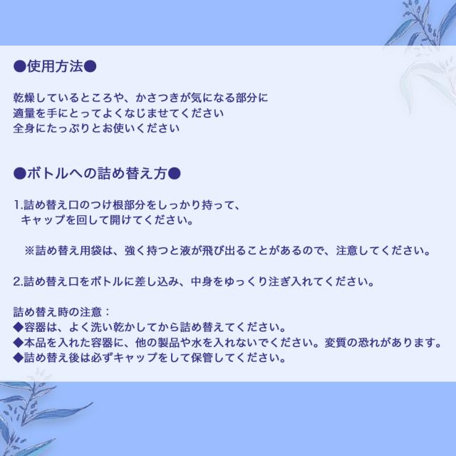 ・大容量なので、お風呂上がりなど全身にたっぷりとお使いいただけます。