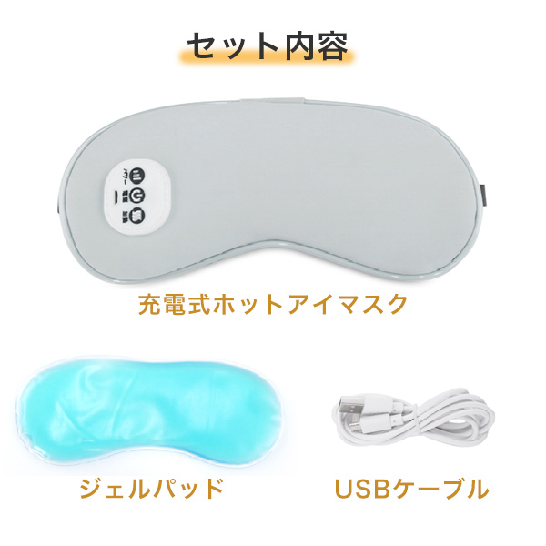 セット内容:アイマスク本体、ジェルパッド、USBケーブル(充電用)