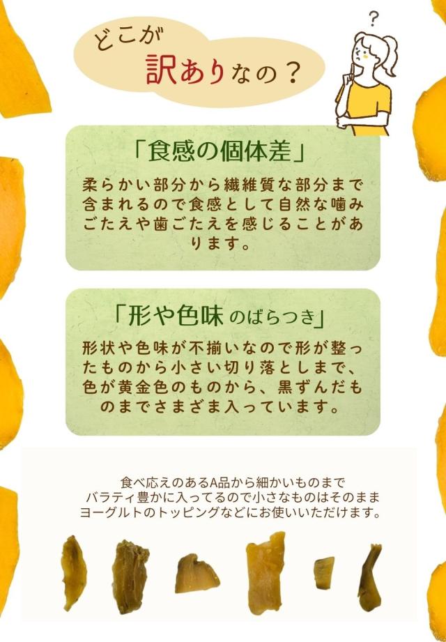 当店の売れ筋人気No.1訳あり紅はるか干し芋は、サイズ感や食感、色にばらつきがあるため訳あり価格でご提供しています。