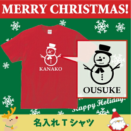 名入れTシャツ「スノーマン2」/ベビー服・キッズ名入れTシャツ、クリスマス、Christmas、Xmas、サンタ、肌着、子供服、キッズウェア