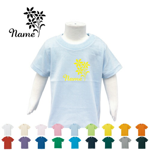 「お花」名入れTシャツ/ベビー服、キッズ服、お名前、ネーム、子供服、キッズウェア、こども服、入園、入学、新学期、幼稚園、保育園、小学校、ベビーウェア、入園祝い、入学祝い、お祝い、ギフト